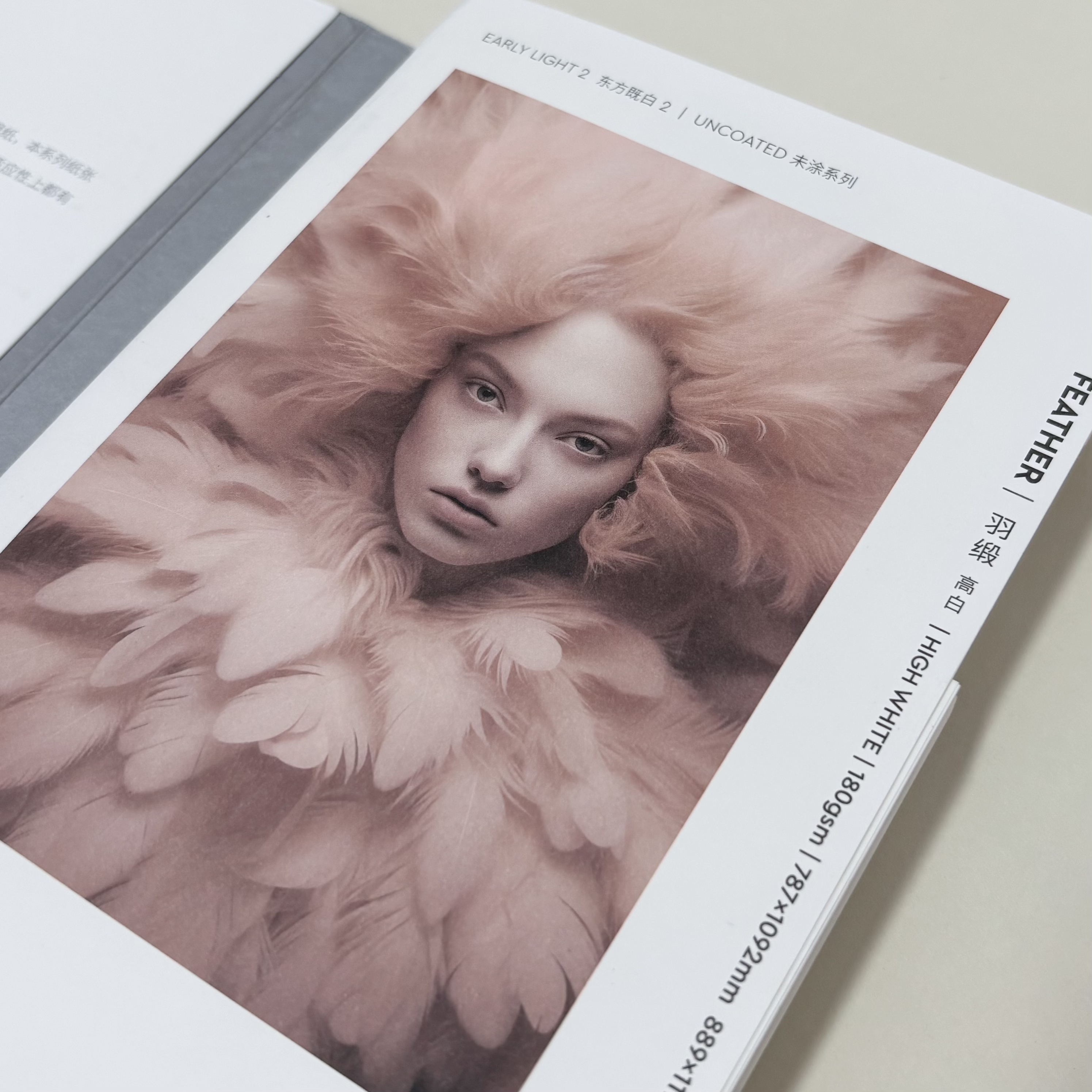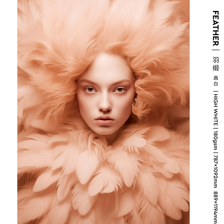 Feather has a rough natural texture, a strong and solid hand feel and excellent bend resistance. it's ahigh-quality long-fiber uncoated paper, which is suitable for brochures, books, high-end folding boxeshand bags, greeting cards, hang tags, leaflets, etc.